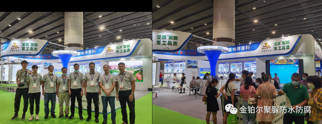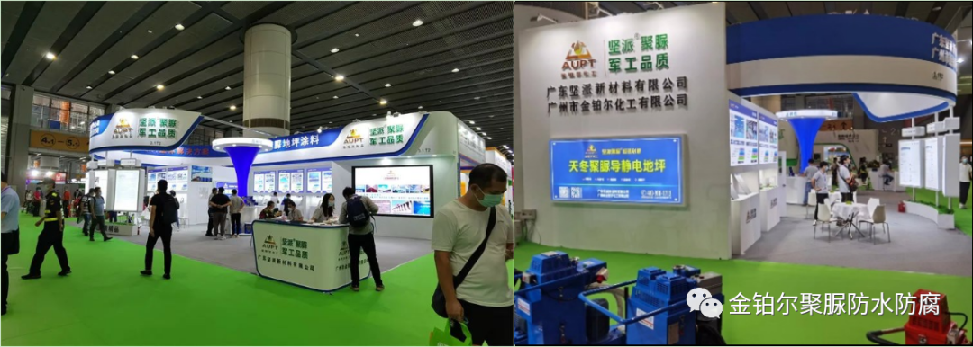 廣東堅派新材料有限公司做為國內頗具影響力的生產天冬聚脲防水和地坪涂料的企業之一,參加了本次亞太地坪展。攜本公司承擔的佛山市科技攻關重點項目之研究成果-第四代聚脲-氟硅改性天冬聚脲彈性地坪涂料產品,高調亮相本次展銷會,憑借過硬的高科技產品和地坪材料技術,美輪美奐的展臺設計,得到了與會人員的高度贊譽,成為本次展會上亮眼的明星參展企業。展位上觀眾絡繹不絕,多家媒體爭相采訪報道,上百家客戶期待合作,展會獲得了超乎預期的圓滿效果。