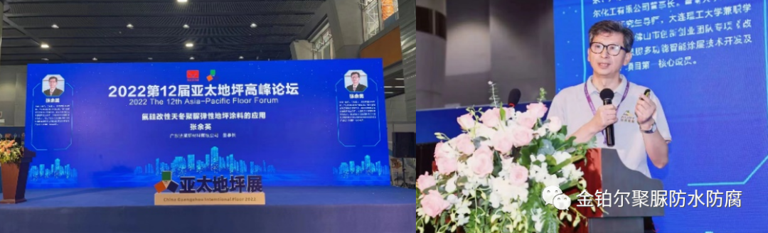 在展會高峰技術論壇上,本公司董事長、國內天冬聚脲專家張余英高工做了《氟硅改性天冬聚脲彈性地坪涂料的應用》的專題演講,獲得與會嘉賓的熱烈反響。