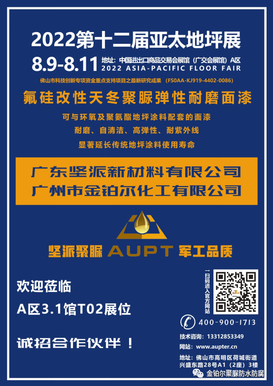 為推動地坪材料行業健康發展,搭建地坪材料行業信息交流平臺,2022年8月9-11日第12屆亞太地坪展在廣州中國進出口商品交易會展館成功舉辦。